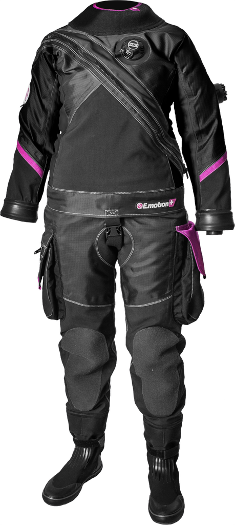 E.Motion+ Ladies First drysuit presents optimal and advanced combination of lightness and flexibility from E.Motion drysuit and also comfort, fabric durability in the most sensitive areas. The special cut was designed to emphasize the figure and details which add an attractive look. Both functionalities combined in modern and elegant cut provide the highest comfort while diving in different conditions and environments, using as well as recreational or technical diving equipment.